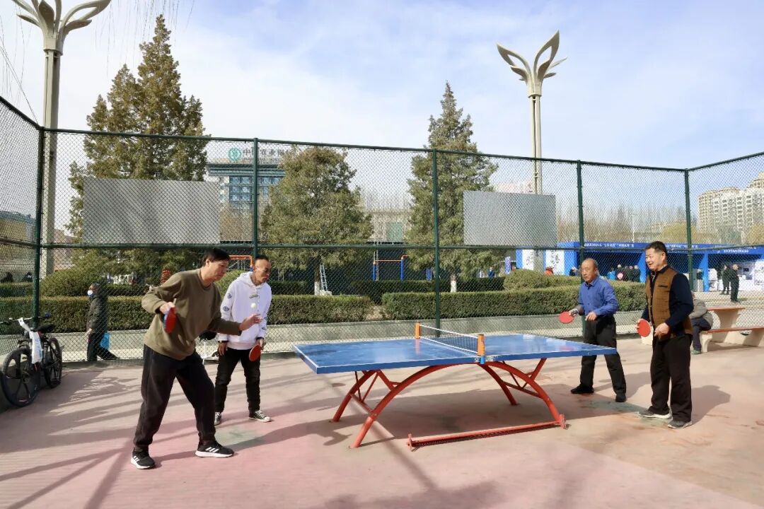 在广场一侧的乒乓球区,市民两两一组,时而快攻扣杀、时而轻吊防守,你来我往、攻防激烈。清脆的击球声此起彼伏,市民步伐灵活、眼神专注,在挥洒汗水中锻炼身体,享受着乒乓球运动带来的乐趣。而在广场的健身角内,单杠、双杠区域也吸引了不少健身爱好者,大家借助器械舒展肢体、锻炼体能。