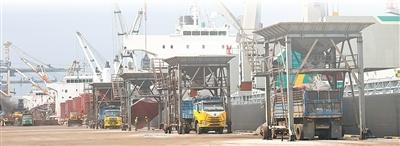 关丹港码头,卸船机正在作业。白元琪摄