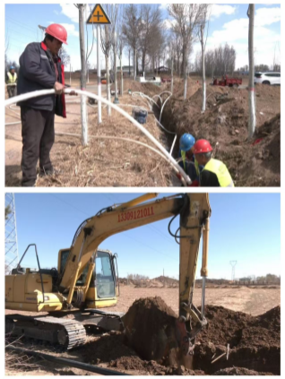 来到与金鸡滩村相邻的喇嘛滩村,记者看到灌溉管道已铺设到位,现场水泵轰鸣,水管蜿蜒,施工人员分工协作,有条不紊地进行抽水、洗井等工序,全力推进机井打设作业。