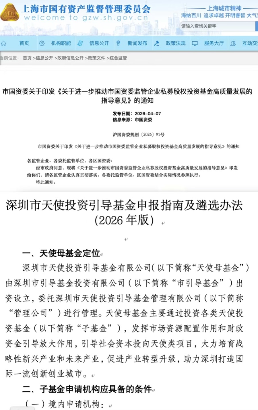 稍早之前,深圳天使母基金于3月发布《深圳市天使投资引导基金申报指南及遴选办法(2026年版)》,包括放宽返投、取消基金管理人本地注册硬性要求等在内的多项举措,也是为了给国资基金“松绑”。